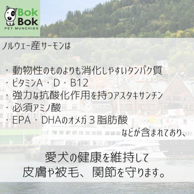 BokBok(ボクボク)サーモンシュプリームは原材料の50%以上が新鮮なノルウェー産サーモンミートです。
