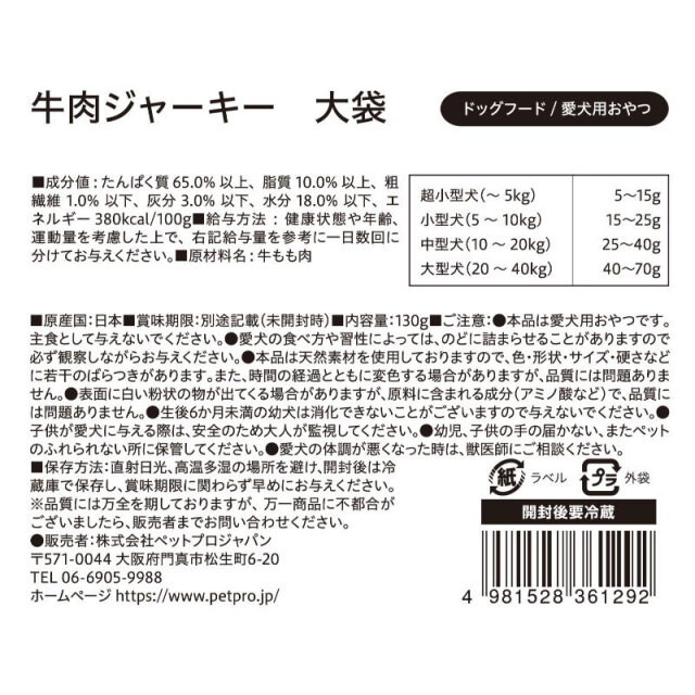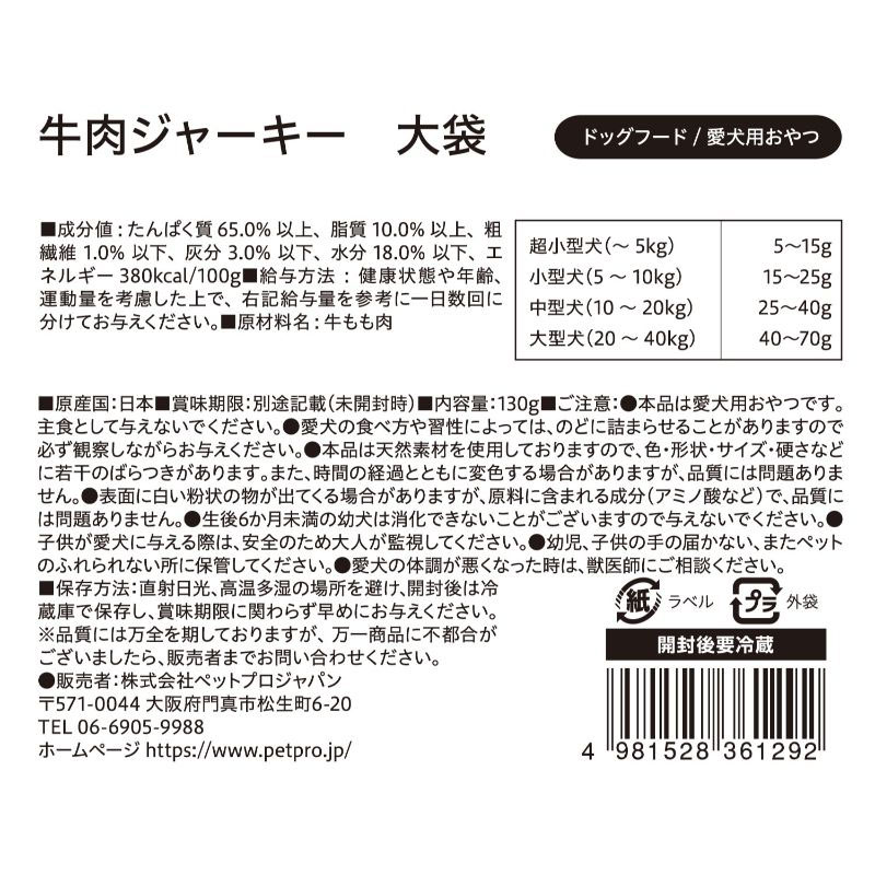 着色料、保存料、酸化防止剤不使用の愛犬用牛肉ジャーキー