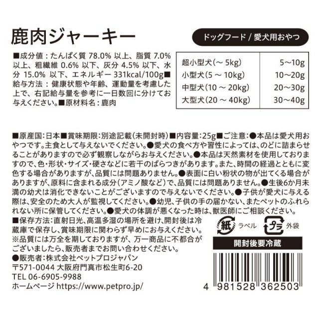 鹿肉は高たんぱく・低脂質で栄養価が高く、ワンちゃんが喜ぶおやつです。