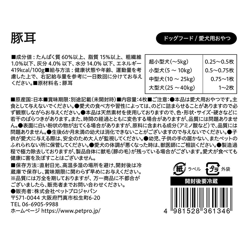 たんぱく質・コラーゲンの補給に最適な大容量の国産豚耳おやつ