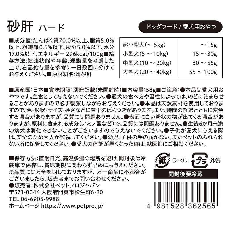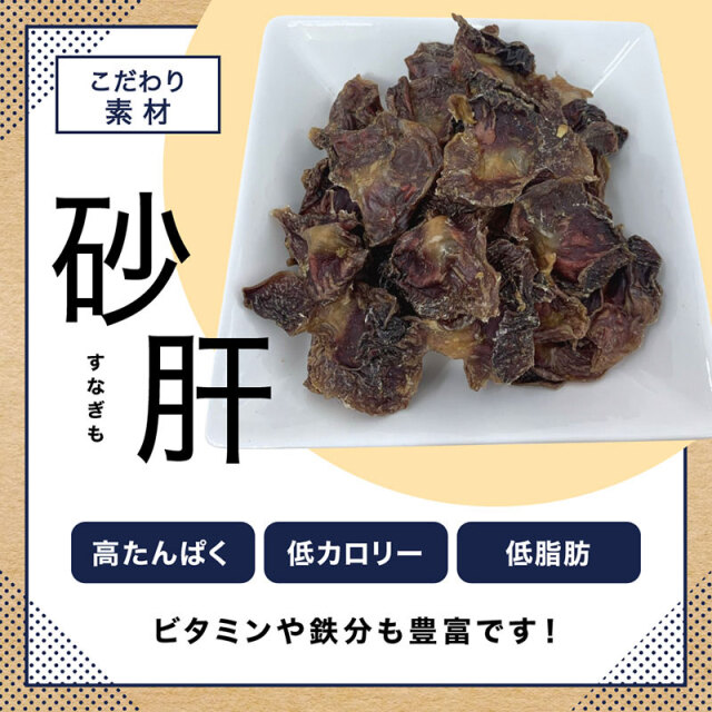 良質な鶏砂肝を素材の旨みそのままに乾燥させたおやつ。
