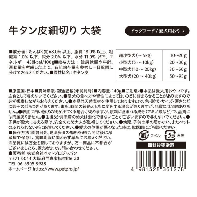 牛タンの皮を食べやすく細切りにした無添加国産おやつ。