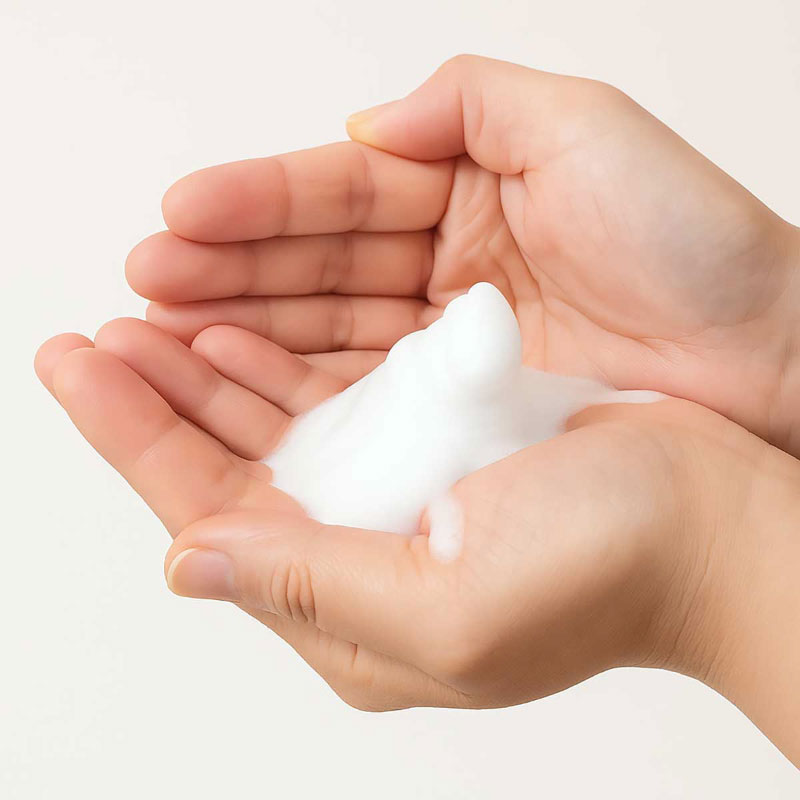 【使用方法】・汚れが特に気になる部分はタオル生地等に泡を適量なじませて汚れを拭き取ってください。