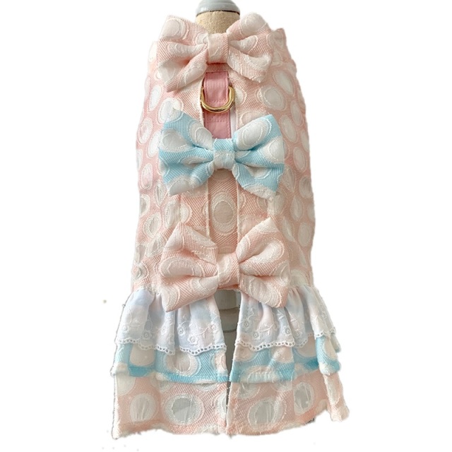 | 注意事項 | ・小さなお子様が、誤飲、誤食をしないよう注意してください。 (細かな部品等がある場合がございます。) ・わんちゃんの体の締め付け過ぎないように装着を行ってください。 ・洗濯は手洗いで洗ってください。洗濯機をご使用されますと、装飾が外れる場合がございます。 ・アイロン使用不可、漂白不可、ドライ クリーニング不可のものとなります。 ・万が一、装飾が外れたり、その他商品が破損した場合は、ただちに使用を中止してください。 わんちゃんが外れた装飾などを飲み込まないようご注意ください。 ・ハーネスにリードのお取り付けの際はしっかりと固定されているか、よくご確認の上ご使用ください。 ・商品には万全を期して制作しておりますが、ご不安な方はハーネスの背面のリングではなく別に首輪を ご用意頂きまして、そちらにリードを固定して頂くと安心ではございます。 ・あまりに引っ張り癖の強いわんちゃんには、商品が外れたり、体から抜けないように細心の注意を払って お使い頂きますようお願いします。場合によってはご使用を中断してください。 ・本商品をお使い中に商品が、わんちゃんの体から外れてしまった場合など、あらゆる事故やトラブルに 当店はご対応致しかねますので、ご了承の上お使いください。 ・散歩以外の用途ではご使用にならないでください。着せっぱなしなどのご使用は行わないようにしてください。 ・本商品は赤ちゃん、子犬、超小型犬、小型犬、一部の中型犬のみ対応です。サイズが大きいからといって 大きな中型犬や大型犬には適合致しません。サイズをよくご確認の上、ご購入ください。 ・縫製は丁寧な作成になっていますがハンドメイドのため商品の写真より若干の個体差がある場合がございますが、 商品の味わいのあるデザインとしてあらかじめご了承のうえお求めください。 |